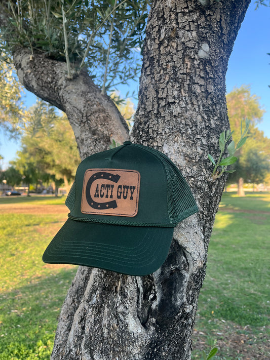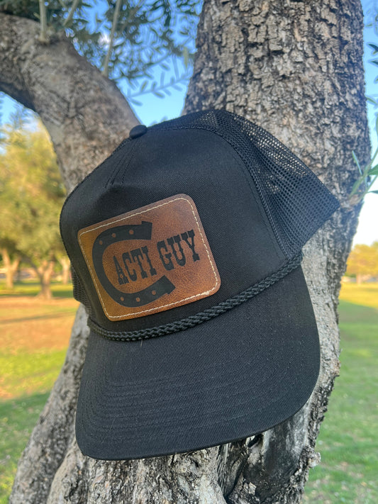 Cacti Guy Classic Leather Patch Horseshoe Font Trucker Rope Hat