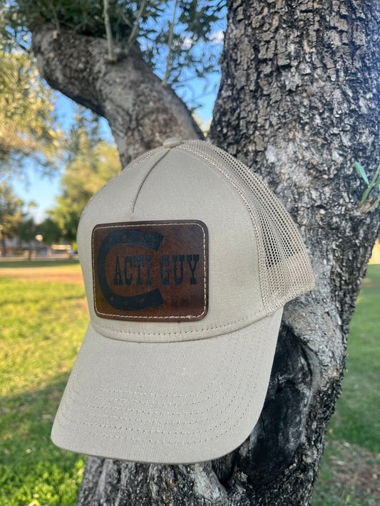 Cacti Guy Classic Leather Patch Horseshoe Font Low Profile Trucker Hat